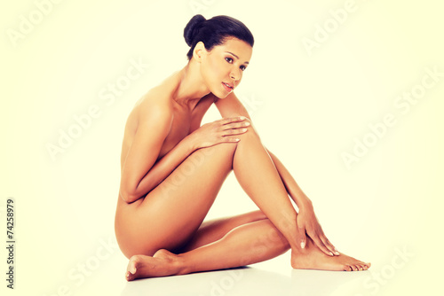 Sexy fit naked woman with healthy clean skin sitting