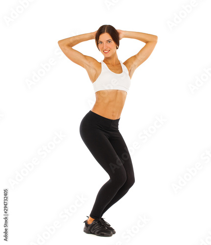 body, fitness, woman, fit, exercise, female, isolated, young, beautiful, arm, aerobic, full, active, athlete, gym, portrait, sport, adult, attractive, beauty, caucasian, girl, healthy, abs, conscious, instructor, length, loss, muscular, dedication, sexy, slim, training, physical exercise, athletic, full-length, model, 1, person, pretty, sporty, studio, happy, brunette, smile, fashion, exercise, warmup, stretch