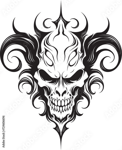 Shadowed Sovereignty Devilhead Tattoo Design in Ebony Infernal Insignia Black Devilhead Logo Vector