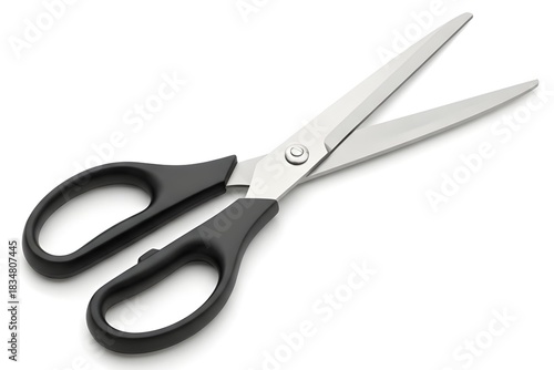 scissors, cutting, tool, office, supply, craft, stationery, sharp, metal, steel, blade, handle, black, ergonomic, open, isolated, white, background, studio, shot, object, equipment, household, utility, design, modern, simple, clean, cut, slice