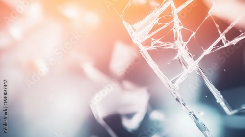 Shattered glass fragments creating a dynamic visual effect in soft lighting