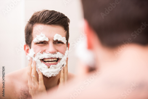 adult, aftershave, attractive, bathroom, beard, beauty, care, caucasian, clean, cosmetic, cream, face, foam, fresh, fun, grooming, hair, photogenic, happy, healthy, his, home, horizontal, hygiene, indoor, lifestyle, looking, male, man, masculinity, man, mirror, morning, 1, people, person, portrait, preparation, razor, reflections, routine, shave, shaver, shaving, skin, skincare, up, laundered, white, young