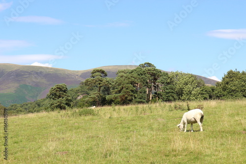 sheep, animal, farm, grass, landscape, meadow, agriculture, cow, nature, field, pasture, sky, grazing, mountain, green, cattle, countryside, lamb, summer, rural, herd, farm animal, white, farming, hill