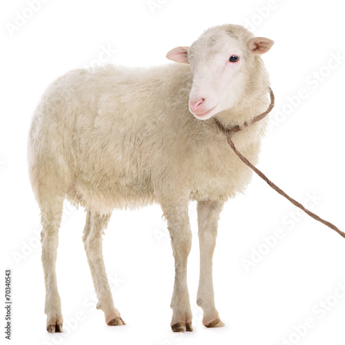 sheep, white, ewe, mouton, isolated, cold, warm, nobody, hoof, agriculture, wool, seasonal, fur, farm, 1, fluffy, portrait, cute, jampacked, woolly, farming, young, farm animal, rural, friendly, fauna, domestic, comfortable, nature, pet, heat, happy, animal, wildlife, rope, leash, tied