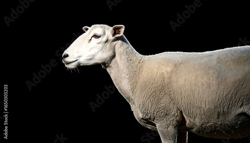 sheep, ewe, lamb, farm animal, farm animal, agriculture, wool, isolated, animal portrait, profile, mammal, grazing, countryside, rural, nature, farm, farming, fluffy, woolly, soft, cute, serene, peaceful, background, black background, cut-out, closeup, hi-res, image, photo, animal, cognition, wellness, school