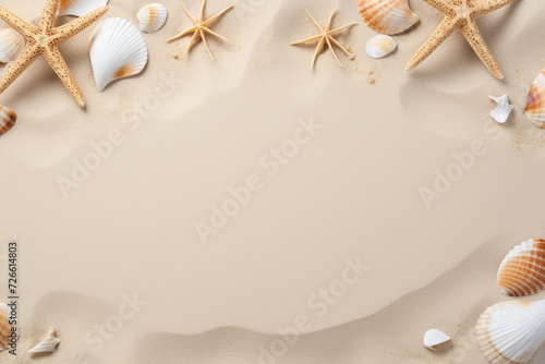 shells and starfish on sand,summer concept,Generated By Ai