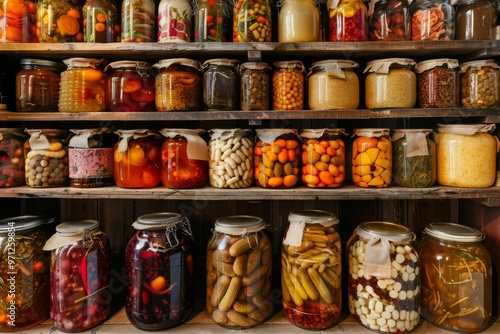 people, shelf, homemade, preserving, pantry, jar, canning, pickling, domestic, kitchen, preservation, organic, environmentally friendly, homegrown, vegetable, fruit, spice, jam, jelly, sauce, condiment, root, harvest, autumn, food preparation, rural, traditional, vintage, store, stockpile, nourishment, ingredient, sustainable, seasonal, emotion, activity, occupation, technology, modern, 1, lifestyle