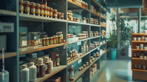 pharmacy, medication, supplement, shelf, bottle, cardboard box, organisation, wellness, retail, indoor, apothecary, health care, drug, vitamin, nutrient, pharmaceutical, store, lighting, commerce, inventory, display, storage, bright, organised, medical supplies, public health, clean, pharmaceutic, chemist's shop