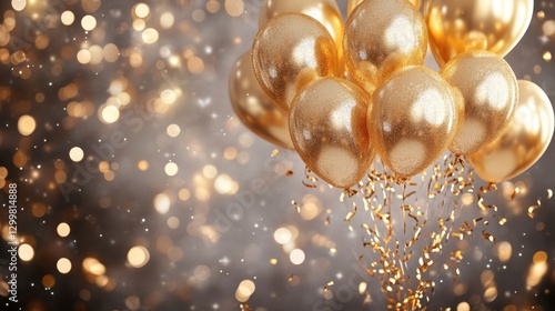 Shimmering Gold Balloons with Festive Glittering Background