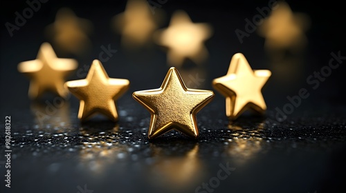 Shimmering Gold Star Shapes on Dark Abstract Background for Festive Holiday