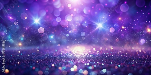 Shimmering Purple and Blue Glitter Background with Sparkling Lights and Bokeh Effects