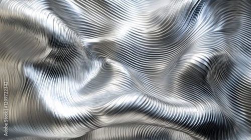 wave, pattern, metallic, surface, rippling, texture, abstract, shiny, reflective, smooth, silver, design, contemporary, art, fluid, undulating, sleek, light, shadow, glossy, sheen, futuristic, movement, modern, ripple, gleaming, dynamic, artistic, elegance, flowing, bright, aglow, aesthetic, intricate, fabrication, polished, industrial, visual, wave, curve, glimmer, style, form, three-dimensional, allure