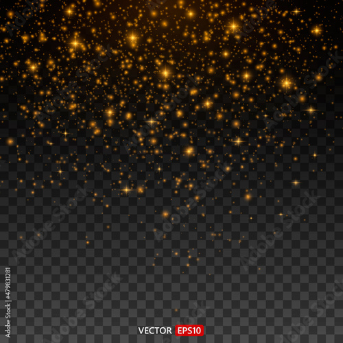 Shining star, the sun particles and sparks with a highlight effect, color bokeh lights glitter and sequins. On transparent background. Set. Vector, EPS10