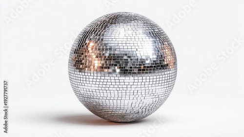 Shiny disco ball reflecting warm light against a clean white background