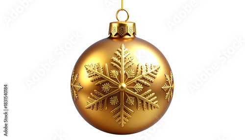 Shiny Red and Gold Christmas Ornament with Glittered Snowflake Pattern – PNG Cutout