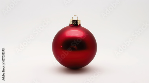 shiny red Christmas ornament with gold cap, perfect for holiday decorations. This vibrant decoration adds festive touch to any setting, evoking warmth and joy