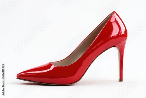 shoe, high, heel, stiletto, pump, red, patent, leather, glossy, fashion, footwear, elegant, style, woman, lady, glamour, luxury, pointed, toe, classic, modern, studio, shot, isolated, single, object, apparel, clothing, accessory, chic, sophisticated, sexy, vibrant, bold, celebration
