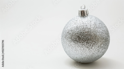shiny silver Christmas ornament with glittery surface, perfect for festive decorations and holiday celebrations. Its reflective quality adds touch of elegance to any setting