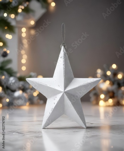 Shiny white christmas star ornament with glitter accents, decor, winter, festive