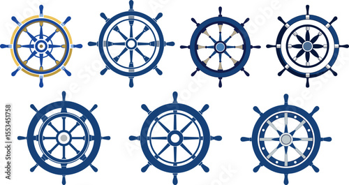 ship steering wheel logo set vector illustration