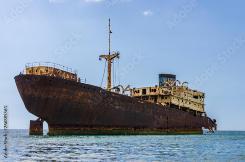 ship, sea, shipwreck, lanzarote, sky, sunken, ocean, rust-eaten, beach, spain, water, boat, wreck, ruined, accident, damage, remote, sinking, decay, pollution, island, shoreline, wave, nobody, disaster, canary, mysterious, loneliness, decadent, demolished, vessel, environment, weather, ghost, old, crash, abandoned, island, stranded, dusk, misty, cloudy, blue