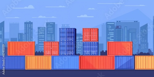 shipping, container, line, city, skyline, transportation, urban, freight, logistic, architecture, metropolis, harbor, distribution, export, equipment, inventory, maritime, yard, connection, transit, cargo, import, supply, waterfront, shipment, industrial, megacity, infrastructure, storage, network, conveyance, commerce, economy, horizon, freighter, space, scenery, landscape, warehouse
