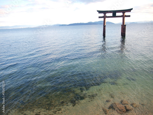 japan, lake, culture, history, religion, twilight, water, shrine, torii, sunset, cloud, red, blue
