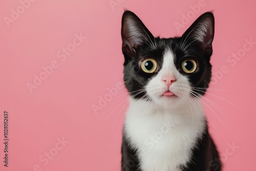 Shocked cat with big eyes isolated on simple background, funny animal expression, cute and surprised face