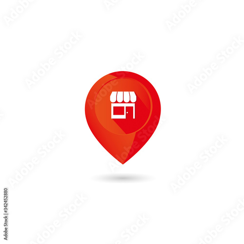 Shop navigation icon on white background. Flat trendy gradient design. The concept of a location indicator on a map, store, market, shopping center for your site, mobile application.