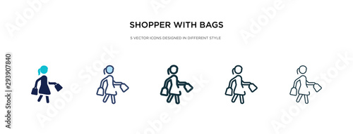 shopper with bags icon in different style vector illustration. two colored and black shopper with bags vector icons designed in filled, outline, line and stroke style can be used for web, mobile, ui