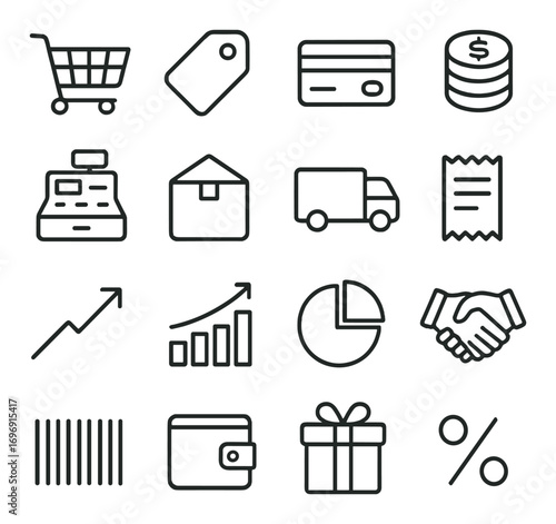 shopping, finance, icon, linear, cart, tags, card, coin, receipt, package, truck, graph, billfold, percentage, gift, barcode, handshake, cash, credit, delivery, price, money, commerce, transaction, retail, growth, statistic, analysis, chart, payment, sale, trade, business, economy, checkout, online, purchase, shipment, logistic, accounting, expense, profit, budget, savings, marketing, investment, supply