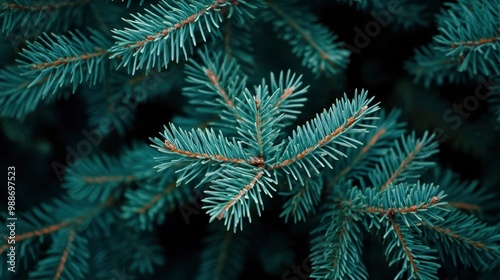 short needles of a coniferous tree close-up on a green background, texture of needles of a Christmas tree close-up, blue pine branches, with generative ai