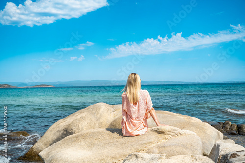 beach, woman, sea, summer, ocean, beauty, water, vacation, sand, body, travel, sky, tropical, tan, relax, people, coast, relaxation, holiday, leisure, nature, sun tanning, sitting, outdoors