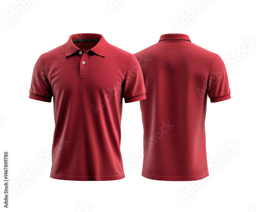 Showcasing red polo shirt design product display front and back view isolated on transparent background
