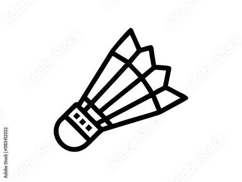 Shuttlecock icon, badminton equipment, simple black and white line drawing, minimalist design, sports symbol, feathered birdie, stylized illustration, clean outlines, graphic element, vector art style