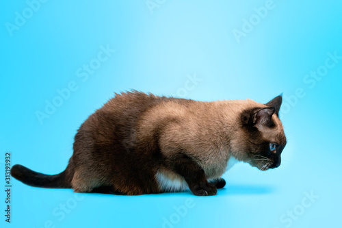 Siamese cat sick on blue background