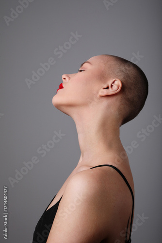 woman, bald, indoor, person, face, female, isolated, studio, young, beauty, style, beautiful, african, cool, hipster, model, posing, head, pretty, piercing, portrait, adult, fashion, background, alone, alternative, american, cancer, difference, diversity, elegant, emotion, emotional, ethnicity, eye, feminine, femininity, identity, inside, lady, lipstick, look, make-up, masculine, winter, alopecia, calm, breath, closed eyes, vertical