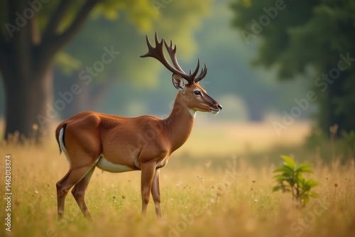 Side profile portrait of a male Barasingha in Kanha's forest , wildlife photo, mammal