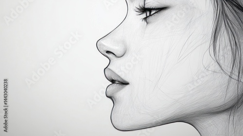 profile, vignetting, woman, face, art, line, drawing, beauty, portrait, realistic, elegant, graceful, delicate, subtile, detail, style, monochrome, fashion, illustration, modern, feminine, pensive, thoughtful, sophisticated, lady, pretty, attractive, hair, eye, nose, lip, mouth, skin, closeup, half face, design, graphic, impression, aesthetic, artistic, digital