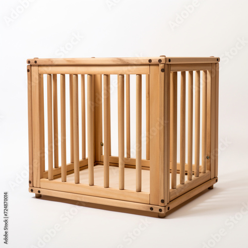 side view of rectangular Wooden Playpen on white background сreated with Generative Ai