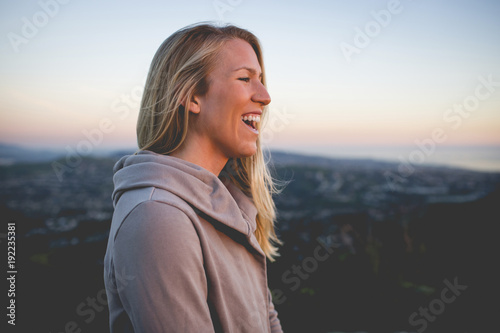 woman, caucasian, young, adult, sky, racked, smile, look, nature, vacation, lifestyle, individuality, leisure, travel, cheerful, happiness, casual attire, long hair, blond, side, outdoors, sunset, alone, people, california, us, us