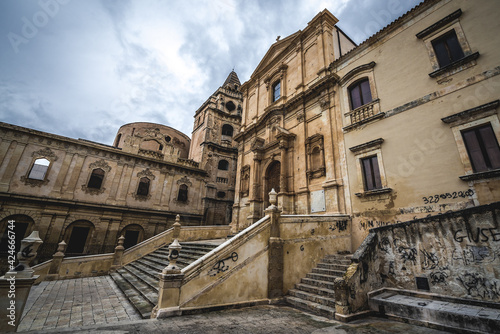 Side view of St Francis of Assisi church in historic part of Noto city, Sicily in Italy