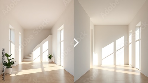 Side-by-side comparison of interior spaces showcasing a simple architectural transformation.
