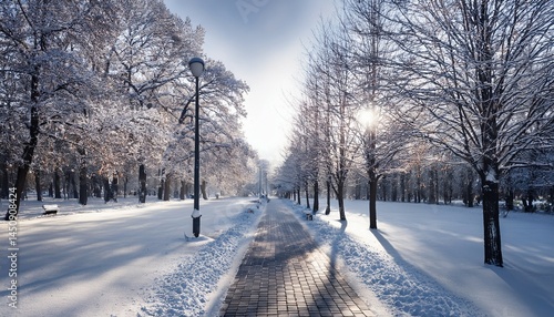 sidewalk, snow, park, landscape, nature, scenic, winter, design, graphic, creative, style, illustration, modern, urban