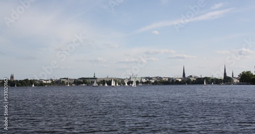 Sightseeing tour on the Alster in Hamburg with a view of 5 famous church towers
