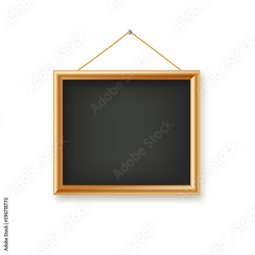 Signboards in a wooden frame hanging . Restaurant menu board. School vector chalkboard, writing surface for text or drawing. Blank advertising or presentation boards. Vector.