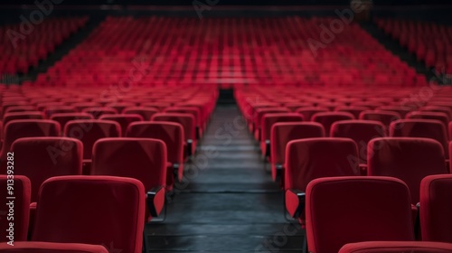 Silent boxing ring, empty seats, large arena, Copy space for text, focus cover all object, deep depth of field