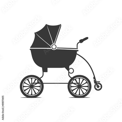 silhouette, baby, pushchair, black, colours, only, art, ai, generated, design, bw
