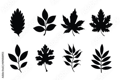 Silhouette Collection of Various Leaf Shapes for Botanical Design and Nature Art