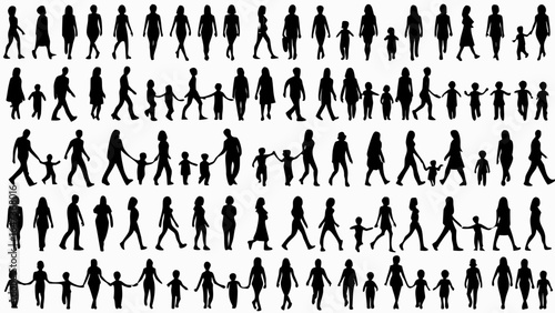 silhouette, crowd, people, walking, holding hands, pose, white background, human, family, children, adult, group, togetherness, community, motion, movement, pedestrian, urban, lifestyle, figure, shape, outline, black-and-white, illustration, design, art, vector, drawing, symbol, icon, signs, concept, abstract, simple, minimalist, style, pattern, texture, wallpaper, template, graphic, element, isolated, clip art, artwork, representation, silhouette